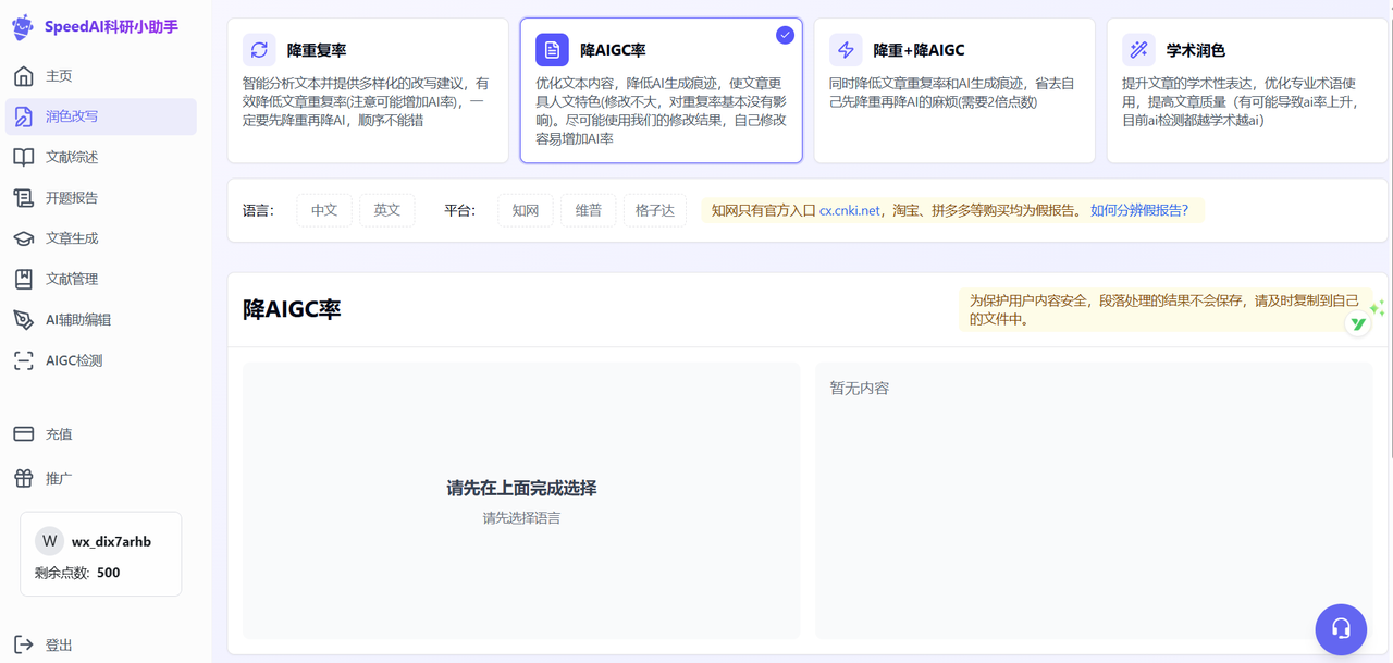 局限:对于新手或者只是想简单降低ai率的文科生来说,进去可能得摸索半天才能找到自己想要的功能。