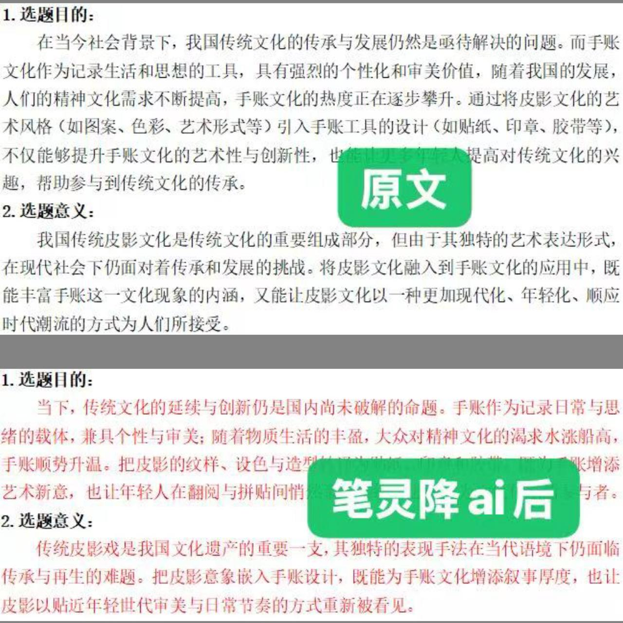 它最大的优势在于它不是简单的“中译中”,而是逻辑上的重构。而且改动后没有“口语化”的问题,生成的内容看着就是正儿八经的学术报告,字数也没有猛增猛减,这对论文字数有要求的同学来说简直不要太友好了。