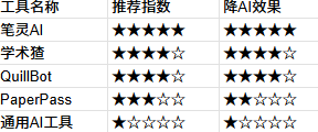 三、总结: AI降AI率工具对比(星级评分)