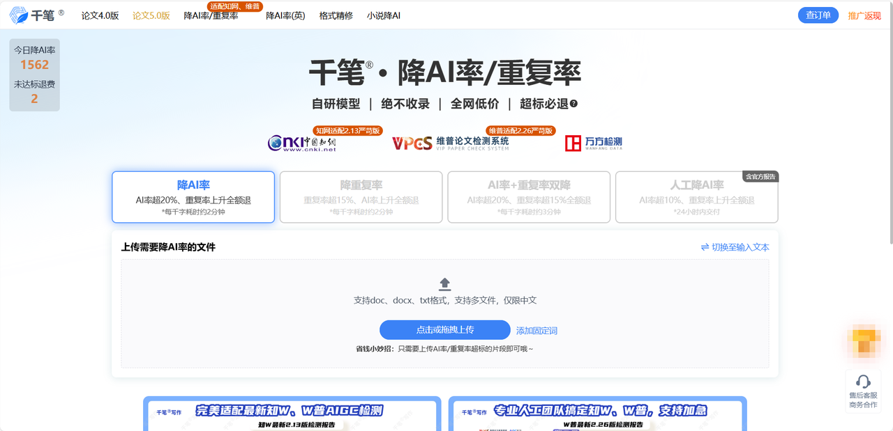 它的界面很简单,支持批量上传。如果你时间很紧,想要快速地做一个初步的降ai处理,它很方便。虽然它宣传是aigc免费降重(部分功能),但深度有限。