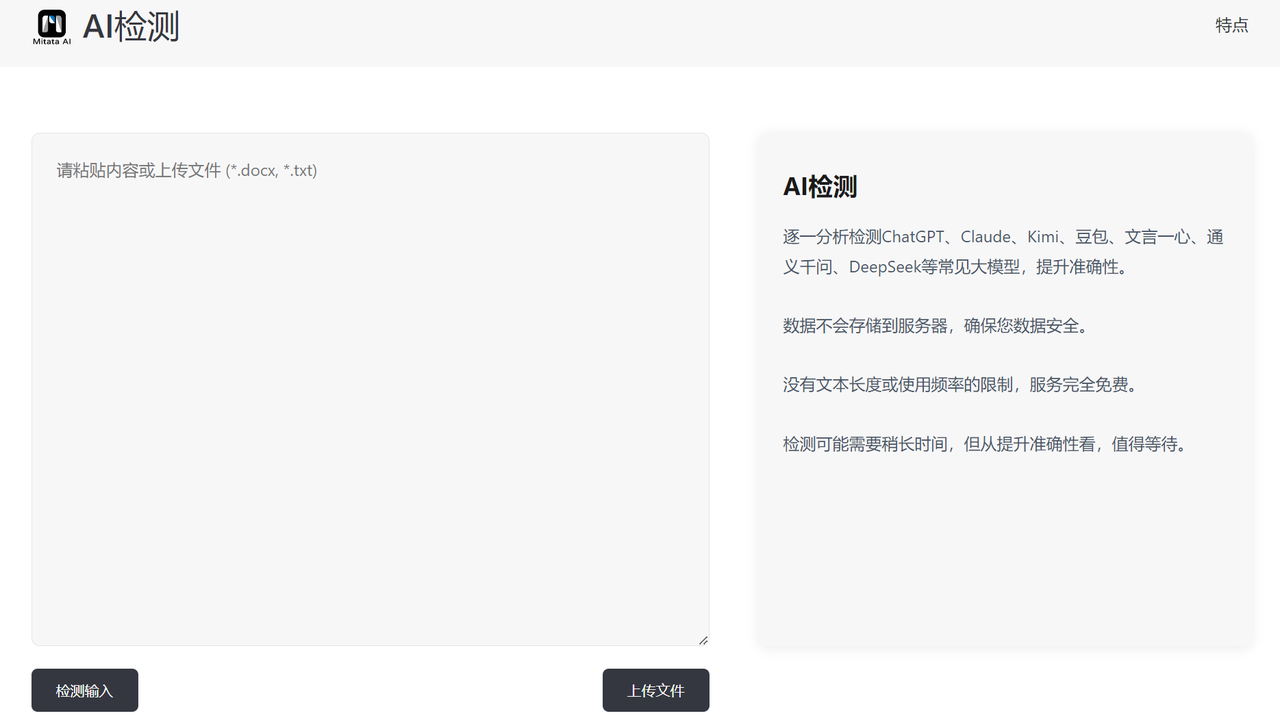 Mitata AI自带检测和降重,长文本批量处理,可选降重强度,可控性强。