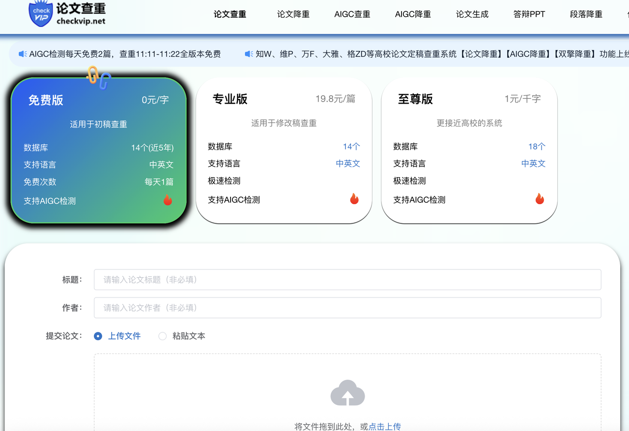 支持中英文双语,适配知网和维普的检测机制。