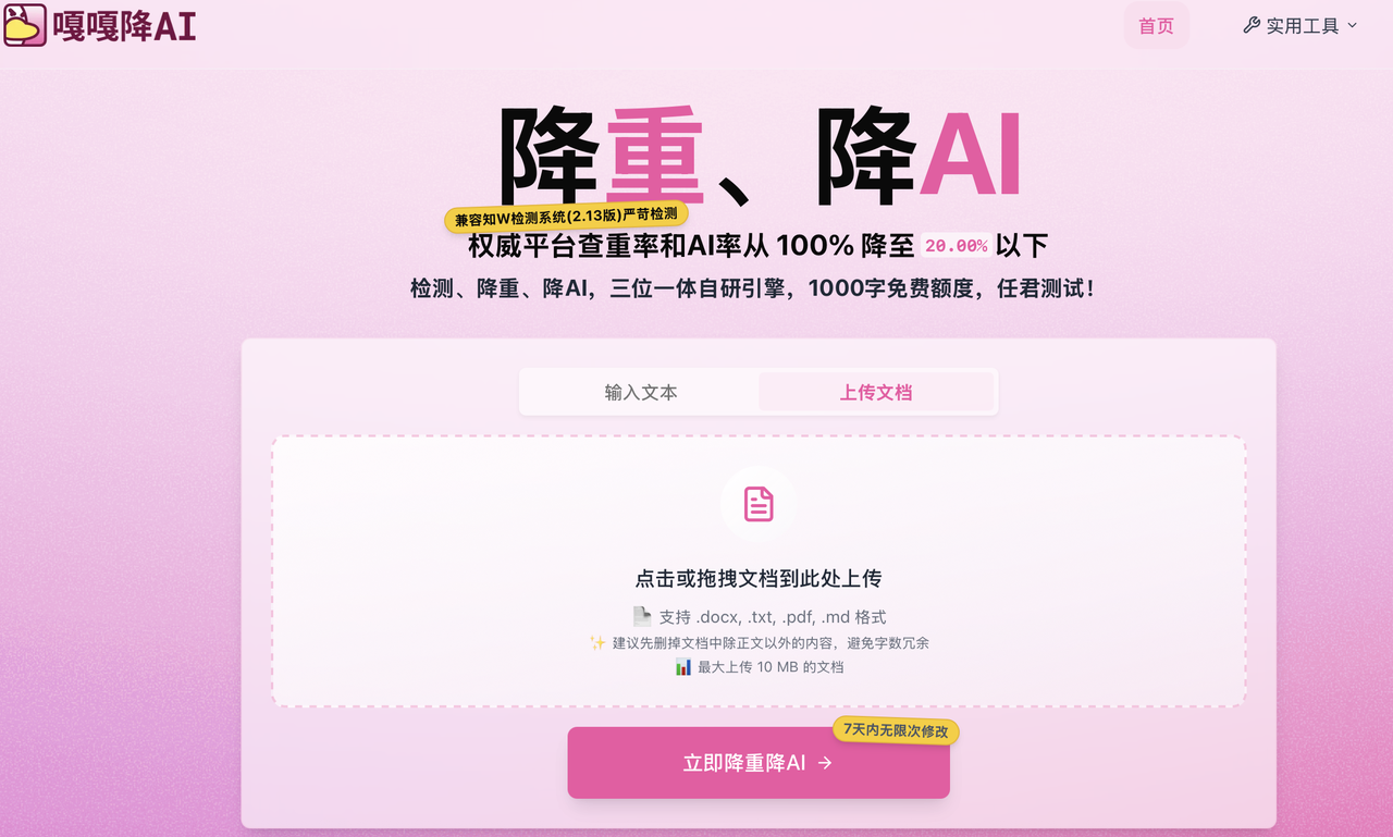 【传送门:】嘎嘎降AI官网