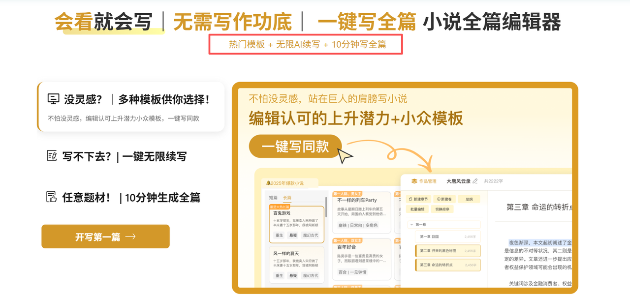 对于新手而言,现阶段最难的不是写出什么流芳百世的神作,而是先把脑子里那团模糊的浆糊,变成实实在在的第一章。这时候,文笔好坏真的没那么重要,重要的是先有产出!这才是ai写小说工具真正的价值——它不需要你文采飞扬,只要你给个念头,它就能帮你把架子搭起来,让你有东西可改。