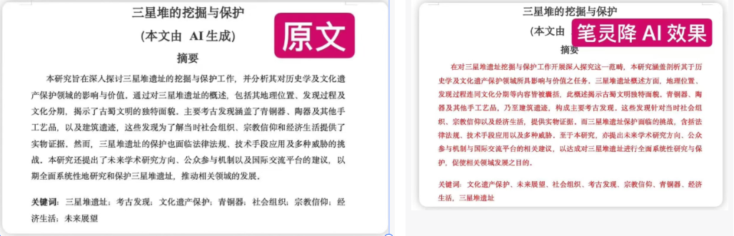 保命(AI率>60%):别折腾了,直接用靠谱的、改写幅度大的。比如笔灵降AI这种,它不是简单换词,而是重构句子,这样降得比较彻底。