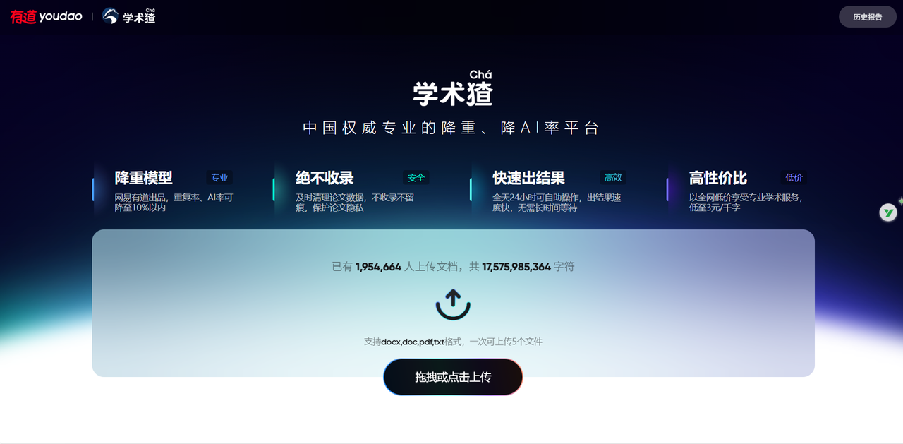 它对新用户有1000字的体验额度。缺点是单次处理字数上限是2000字,大论文得拆开分好几次提交,有点繁琐。