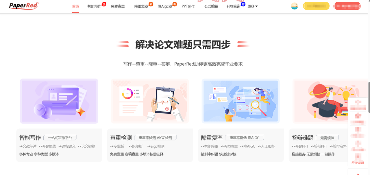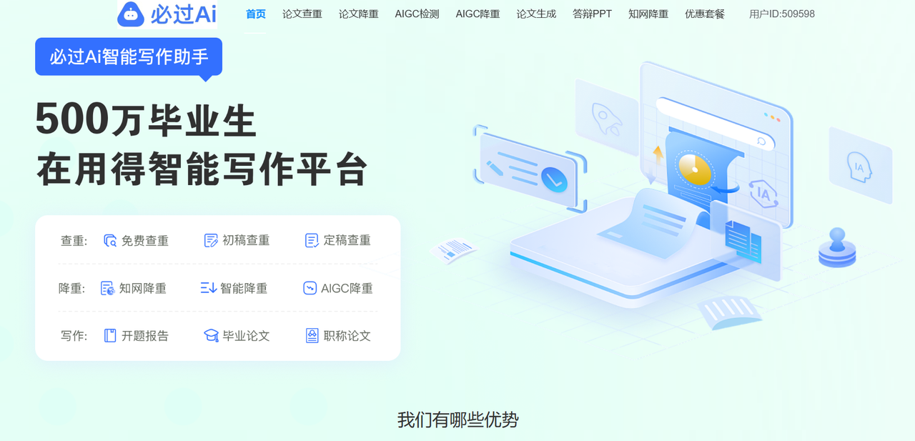 功能简介:一个综合性的论文服务平台,AI降重、AIGC检测、查重都有。