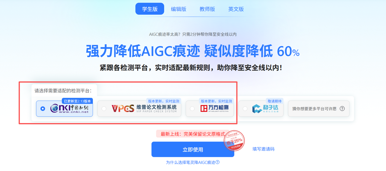 它不是单纯的工具,更像是一个聚合平台。它最好用的功能是会出一份详细的检测报告,告诉你哪句话有问题。对于喜欢精细化操作、看着报告一点点改的强迫症同学来说,体验不错。但在论文降ai的响应速度上,高峰期会有点慢。