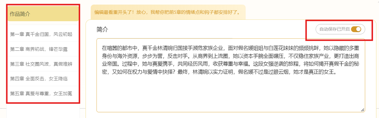 我填入了大概的剧情走向,它生成的正文居然自带“钩子”,逻辑非常顺畅,而且可以保存在站内,不用担心写着写着数据丢了。它不像是在写作文,更像是一个熟读了上千本爆款网文的“老手”在帮你续写。