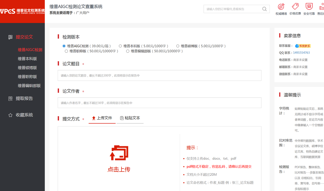 二、维普AIGC检测入口