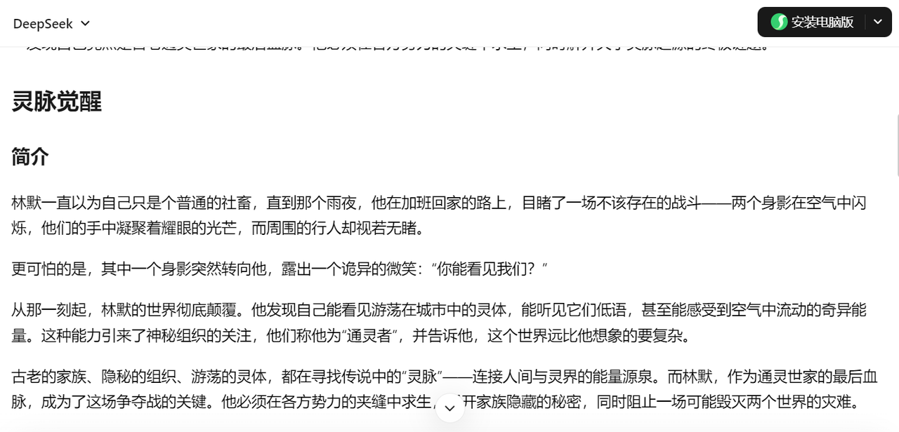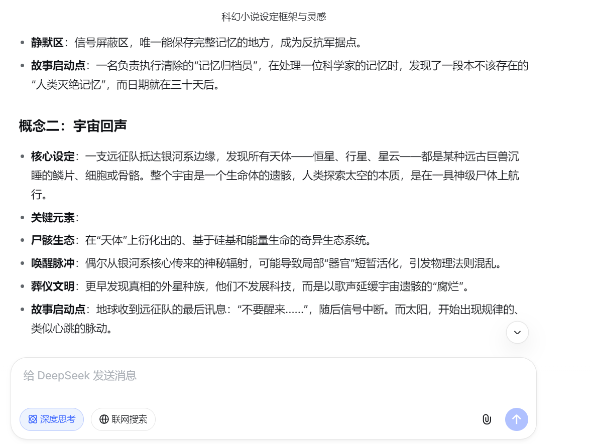 DeepSeek在逻辑处理方面表现非常出色。如果你写的是悬疑、推理或者无限流这种对逻辑严密性要求极高的题材,它是一个很好的辅助帮手。