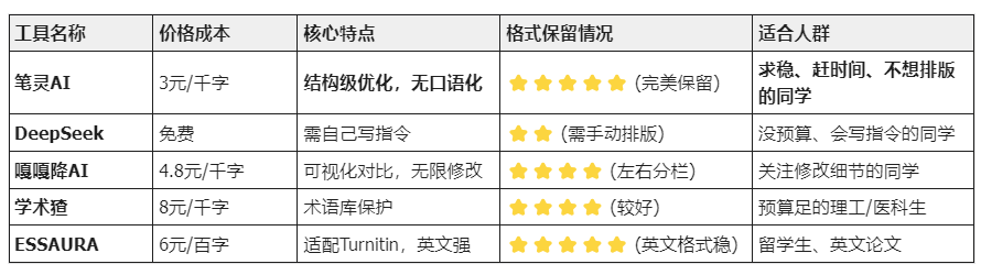 第三部分:降AI工具实测对比表