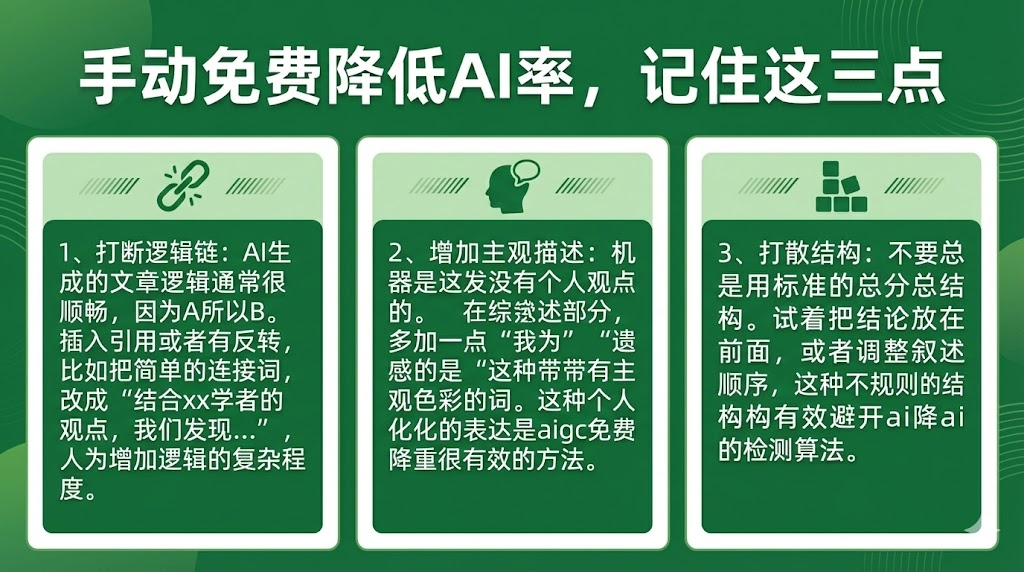 想要手动免费降低ai率,记住这三点: