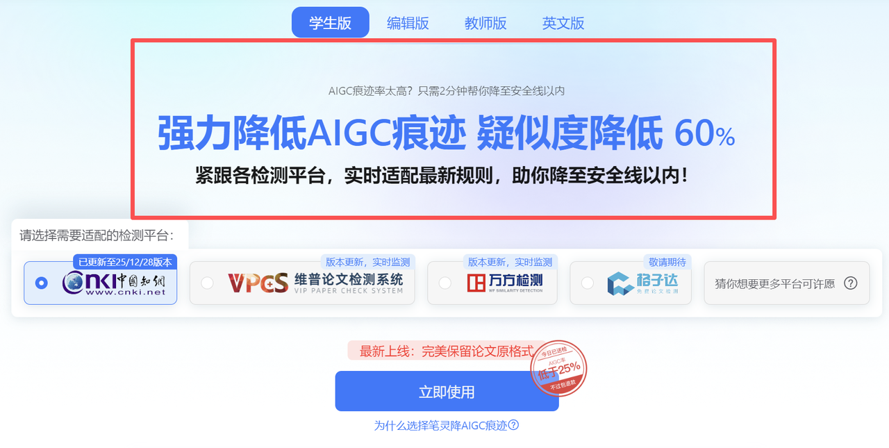 手动改确实能保留学术性,但效率太低。如果Deadline临近,几万字的论文必须借助工具。为了帮大家省钱省时间,学长自费测了市面上5款主流工具,主打一个真实、客观、不吹不黑。