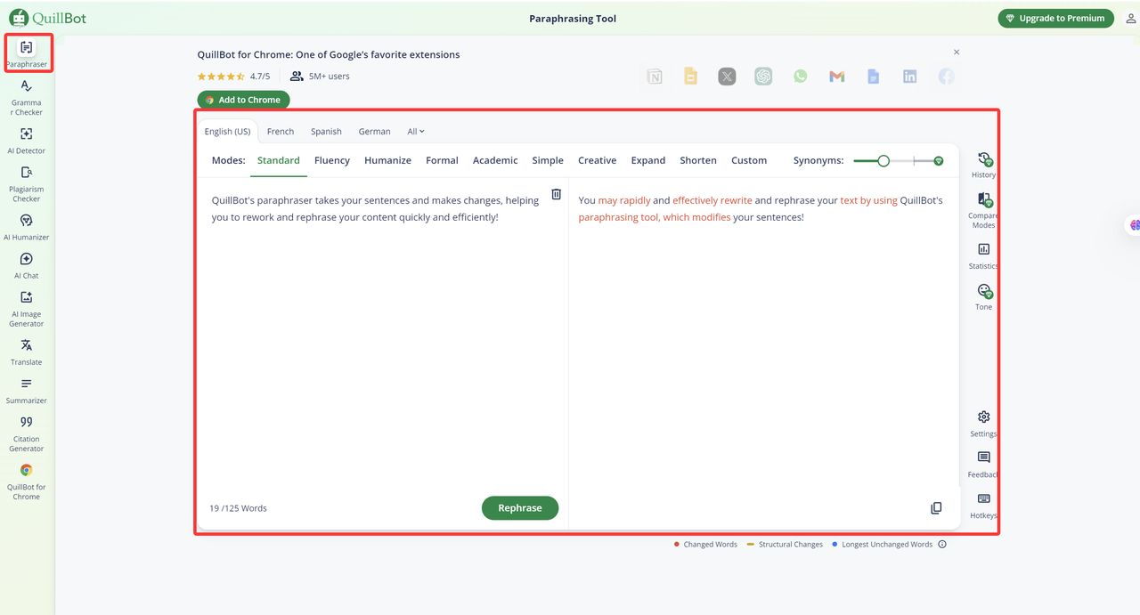3、QuillBot —— 英文神器,中文慎用