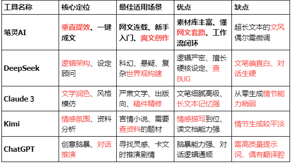 总结:5款AI写小说工具横向对比表