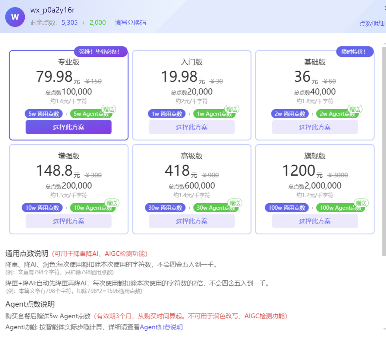 实测发现,为了降低AI率,部分内容会出现口语化倾向,不够学术,需要手动调整 。而且它的计费逻辑是点数≠字数,且分通用点数和Agent点数,消费机制比较复杂,容易让人晕头转向 。