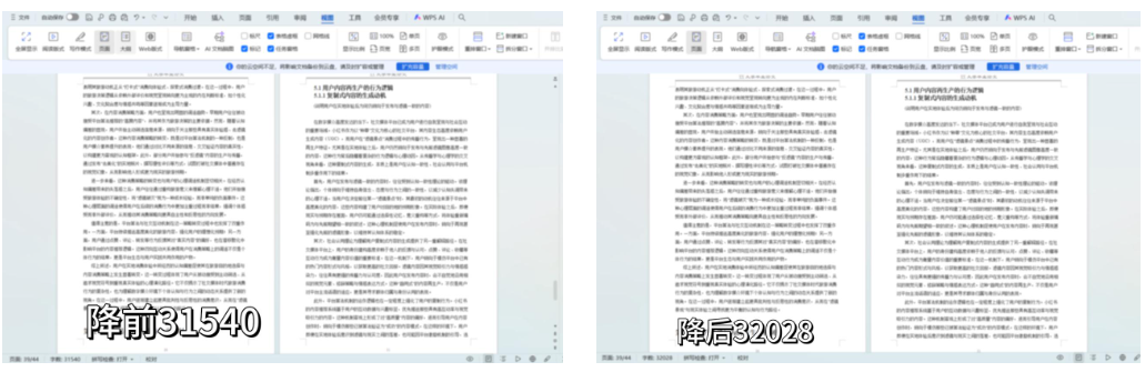 字数稳定: 降改前后字数变化很小,没有为了降AI而疯狂注水 。