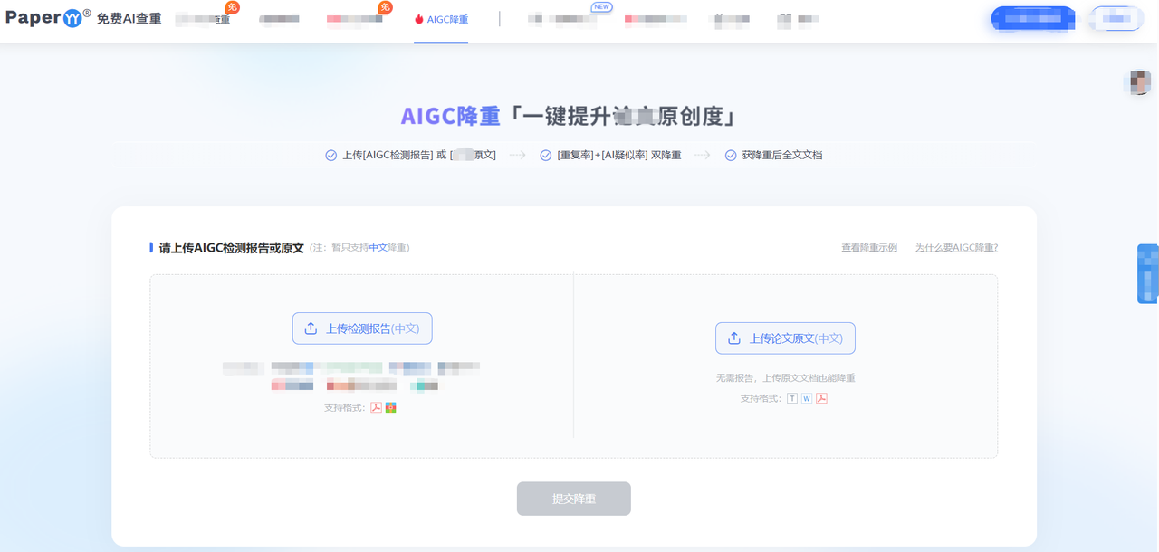 核心功能:它可以把重复率和AI率一起降,提升原创度。