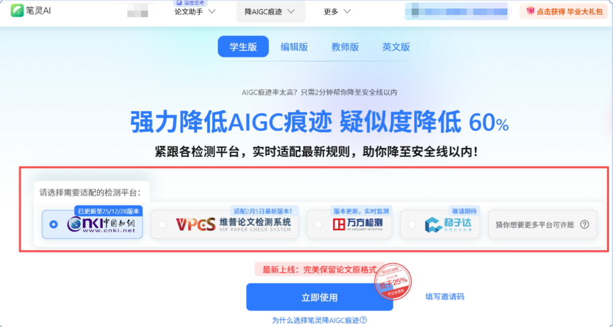 适合人群: 主要为了降查重率,顺带看看AI率的同学。