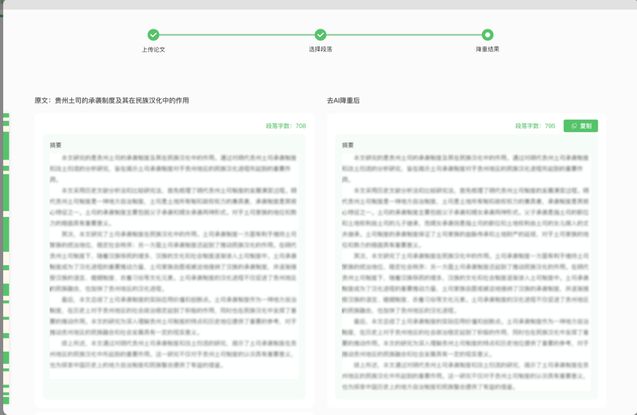 定位: 以便宜著称的查重平台,自带AI降重功能。