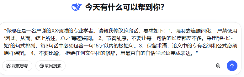 如果你预算有限,想先尝试免费降ai率,那么学长给你准备了一套实测能降下来的与DeepSeek沟通的指令。